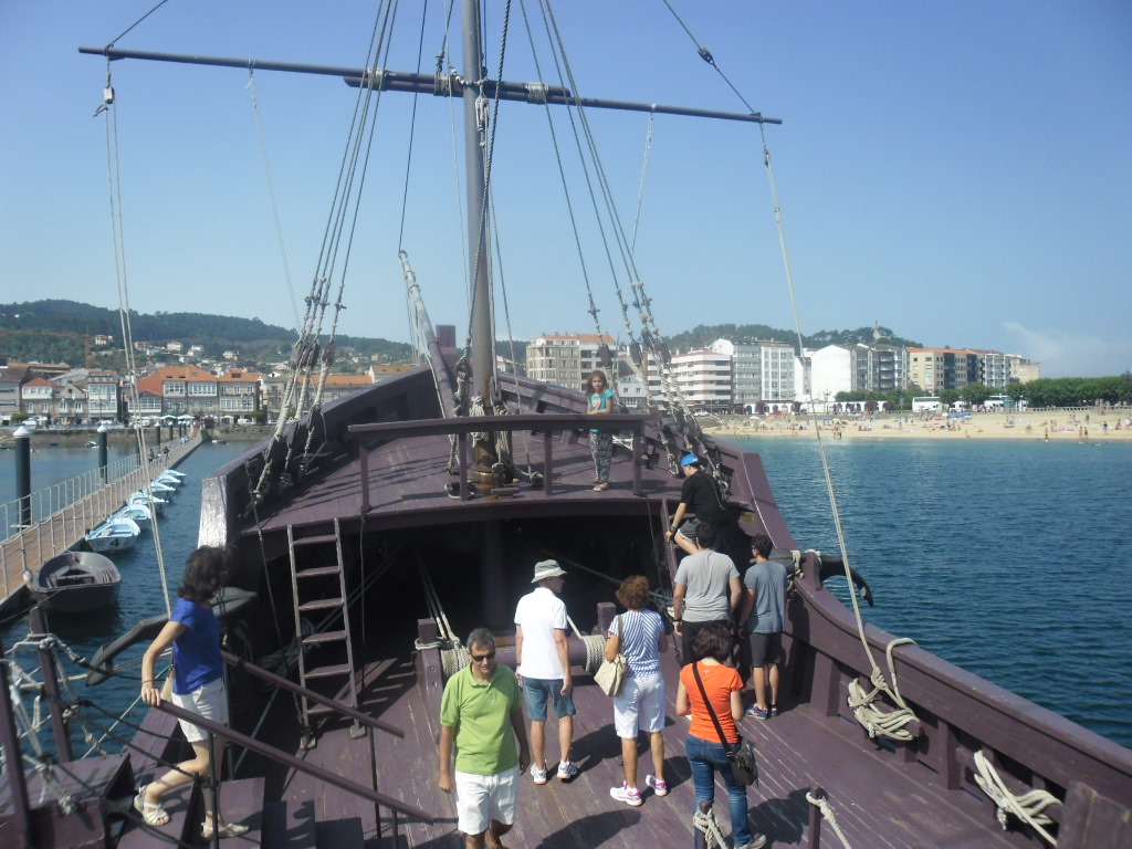 Mouillés devant le port, nous pouvons voir la réplique grandeur nature de La Pinta. Ce vaisseau, dirigé par Martin Alonso Pinzon, a accosté au port de Baiona le 1er mars 1493. Christophe Colomb, à bord d’un autre navire, est arrivé à Lisbonne, le 4 mars 1493, soit 3 jours après La Pinta ! Pas de chance, la découverte du Nouveau Monde avait déjà été annoncée à tous, et notamment aux rois catholiques. Christophe Colomb aurait dû prendre un pied de pilote, comme disent les marins. Pas ingrate, l’histoire a retenu son nom.