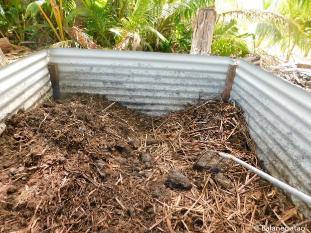 D’autres cultures sont en partie destinées à la vente, après que les besoins de la communauté sont satisfaits. Il s’agit de la précieuse vanille, de l’odorante huile de coco et… des mottes de sel ! Depuis que, sur Balanec, nous lavons les légumes à l’eau de mer et cuisinons avec (riz, pâtes…), il ne me viendrait pas à l’idée d’en acheter. Sur ce motu, produire du sel tombe pourtant sous le sens. Un parc à poissons et un petit élevage constitué de cochons et de poules apportent toutes les protéines nécessaires tout en participant pleinement à la fertilisation. « Et les vaches ?« , demande Erell. « On n’en a pas, répond Jacob. Les lapins auraient trop chauds et les canards ont été mangés par les chiens« .