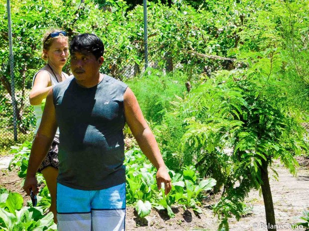 Notre guide Jacob cueille laitues, blettes, papayes, citronnelle… pour les voileux de passage.