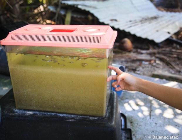 La communauté est autonome en eau ; elle exploite les nappes phréatiques qui se forment sous le platier de corail et collecte l’eau de pluie. Pour se se prémunir d’une infestation de moustiques, les réservoirs servent d’aquarium à une tripotée de « pipis », de minuscules poissons amazoniens. Ceux-ci gobent les larves des moustiques toujours bien à leurs aises dans les eaux stagnantes. C’est plus sain que d’ajouter un peu de pétrole lampant. Quant à l’énergie, elle est fournie par des panneaux solaires d’une puissance de 7000 watts. « Largement suffisant pour les besoins du quotidien mais pas pour les grosses machines comme le poste à souder, précise Jacob. On fait alors tourner le groupe électrogène. »