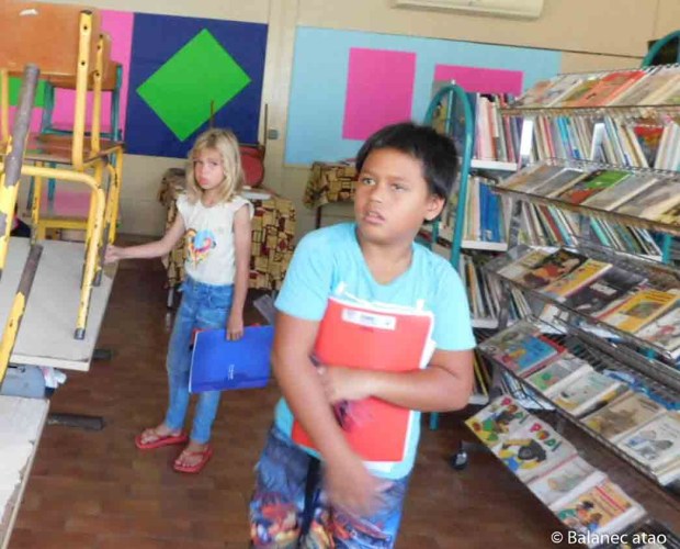 Mes copains s’appellent Navame, Tehiki, Oneil, Cédric. Il y a un filet de volley, on joue aussi au foot, à tic-tac, à la balle aux prisonniers, aux billes… Je me plais beaucoup dans cette école.