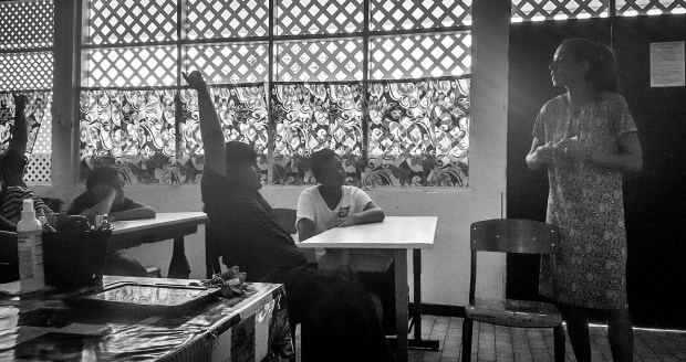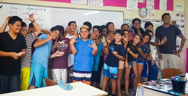 Au début, la maîtresse a demandé si j’étais déjà allée à l’école parce que je ne connaissais pas les rituels. Maintenant, je sais écrire la date en français, en marquisien (« Pô e ina / no uaòu MMXIX »), sauter une ligne, laisser trois carreaux pour la marge, me mettre en rang…