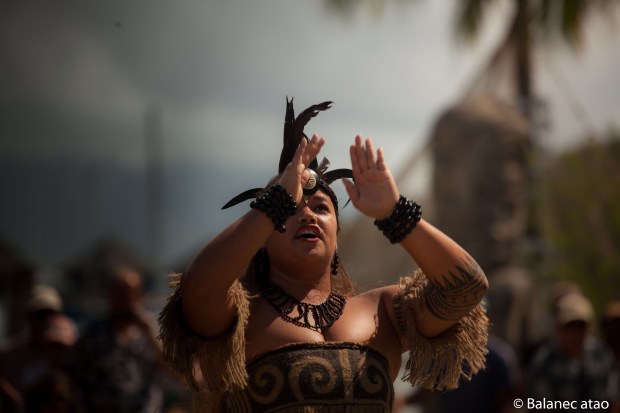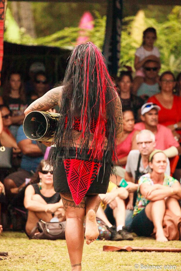Quand s’avancent sur le devant de la scène un jeune homme, puis, une jeune femme, en simples paréos, les fans se font connaître par des cris et des encouragements qui transforment To’ ata en stade de foot. Le concours du meilleur danseur repose sur la rapidité et la souplesse dans le mouvement. A voir leurs déhanchés, j’en ai mal aux reins. Eux n’esquissent pas un seul rictus. Comme tous les danseurs, ils gardent un sourire bienheureux collé sur les lèvres.