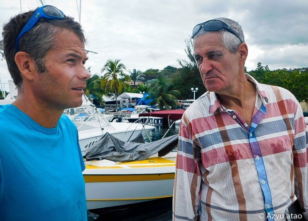 C’est ainsi embarrassés de notre 9 tonnes que nous recevons l’appel enjoué de Christian. Il habite le Relecq-Kerhuon, dans le Finistère ; il cherche un Ovni. On est tout disposé à lui céder ! Par hasard ou par intuition (?), il a programmé un voyage en Polynésie avec son épouse en octobre. Descriptif détaillé de l’Ovni, inventaire de l’équipement, photos dessus, dessous, dedans, vidéo mise en ligne sur la chaîne YouTube Atao Balanec… Ne manque que la visite réelle qui se fera par l’intermédiaire d’un ami vivant sur Tahiti, ce dernier retransmettant en vidéo via Skype la découverte du monocoque et les explications de Jean-Marie. Le couple est conquis et signe pour l’achat de ce bateau situé à l’autre bout du monde.
