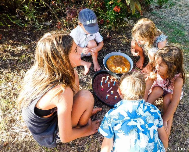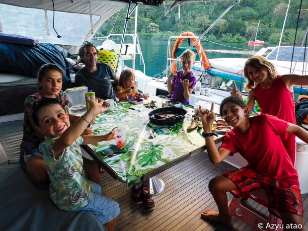 A Tahiti, le mouillage principal regroupe des centaines de voiliers. C’est parmi eux que Coline a fêté ses 12 ans, trop heureuse de passer son anniversaire en compagnie notamment de Cyrus et Marin.