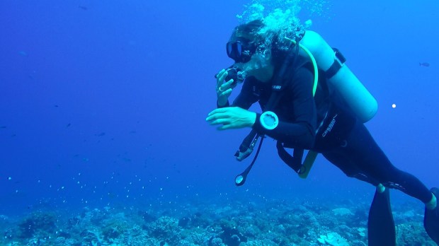À Fakarava, je passe son niveau 1 de plongée en bouteille. Au cours des 5 sorties au nord de l’atoll, je rencontre des raies manta, des bébés requins, des Napoléons et des poissons-feuilles. Tout une faune dans 20 mètres de profondeur.