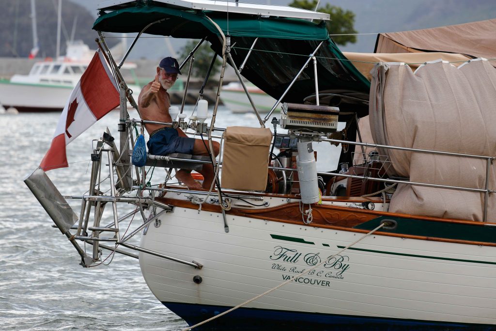 Des Français, Américains, Canadiens, Anglais, Autrichien… Certains, comme Azyu, étaient déjà à Hiva Oa depuis des semaines. Beaucoup d’autres sont arrivés en cours de confinement. Les Marquises sont en effet la destination de prédilection à l’issue de la Transpacifique est. De surcroît, la meilleure période pour franchir cet océan est de février à juillet. Aussi, tous les deux jours, la petite île de Hiva Oa voit-elle arriver des voiles du Panama, d’Équateur, du Chili ou encore des Galápagos. Un navigateur solitaire, dont l’esquif d’environ 8 mètres est immatriculé en Malaisie, a mis 2 mois et demi pour atteindre les Marquises, son pilote automatique l’ayant lâché en début de parcours ; le type a même perdu son annexe pendant la traversée ! Comme lui, d’autres équipages arrivent fatigués, sans plus de vivres ni de gasoil, ni même un franc pacifique en poche. Or, on les oblige à repartir illico sur Papeete située en zone cyclonique et contaminée par le Covid 19 ! Ils en ont au minimum pour une semaine de nav’…