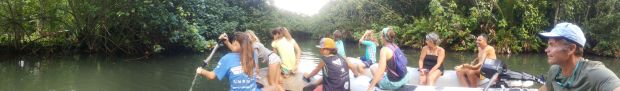 Remontée de la rivière en baie de Faaroa avec une belle brochette de copains.