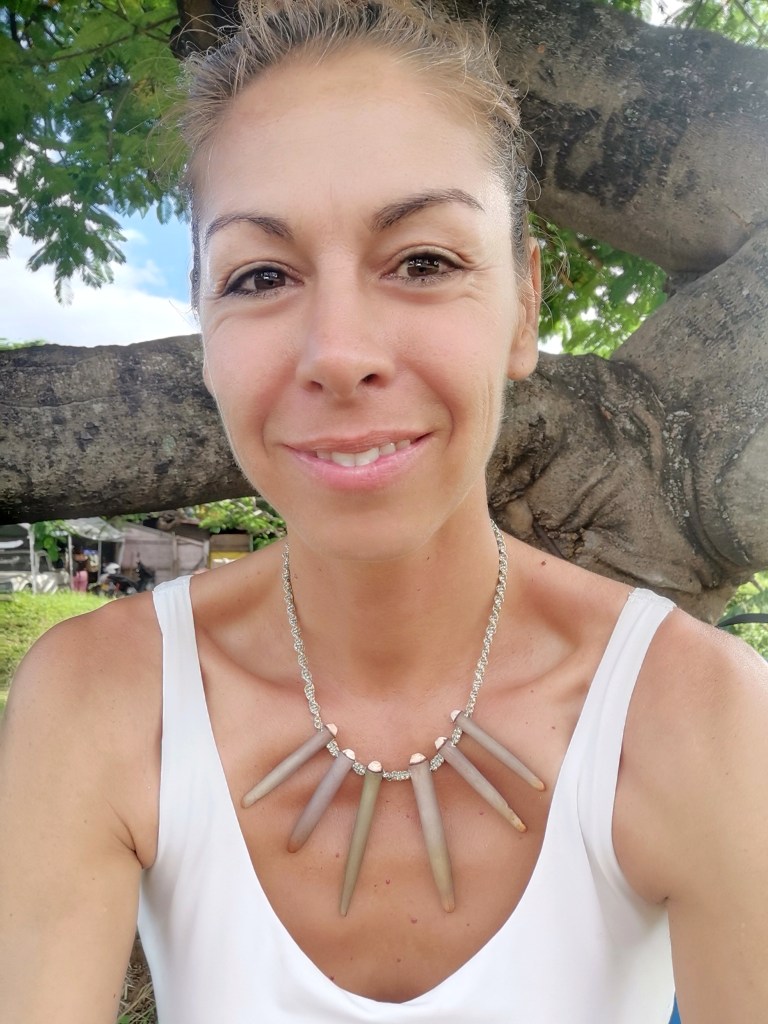 Chaque jour, je tutoie la nature polynésienne : l’eau cristalline du lagon, les fleurs exubérantes partout, les crêtes abruptes des volcans éteints, les couchers de soleil incroyables… J’ai eu envie d’un peau-à-peau avec ces éléments. D’où l’idée de bijoux portés en talisman, à l’instar des tatouages marquisiens.