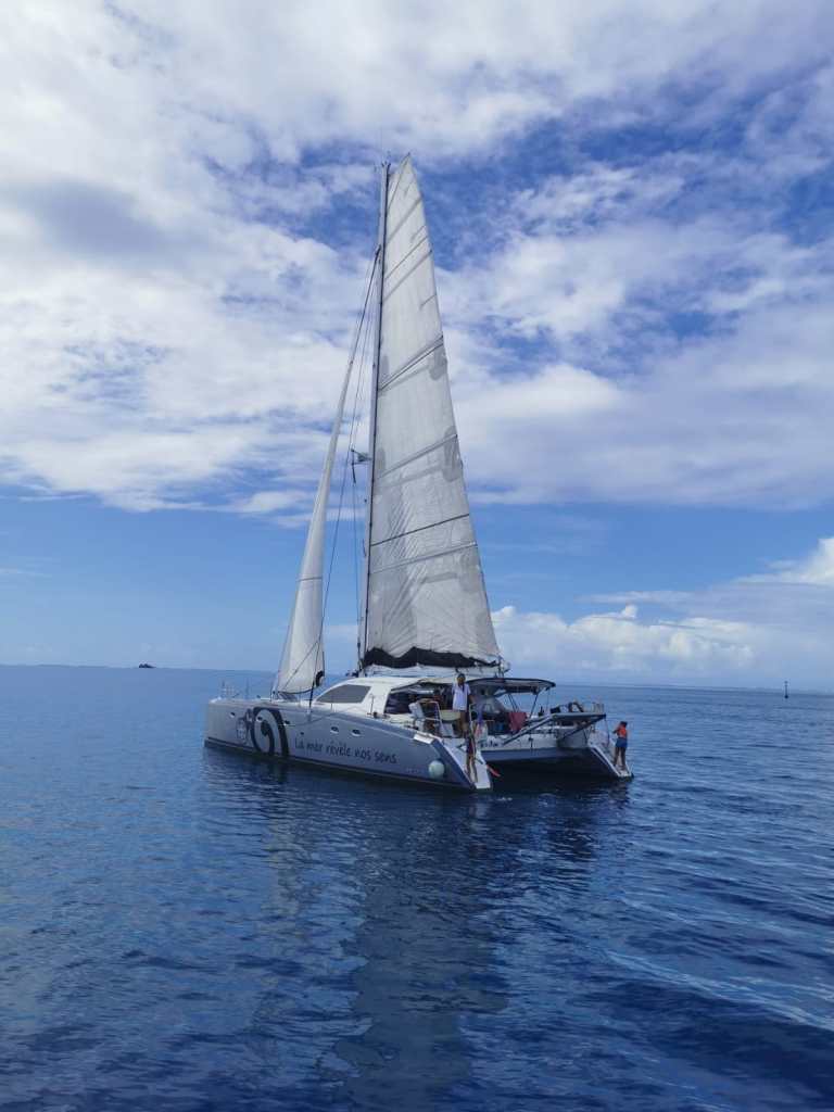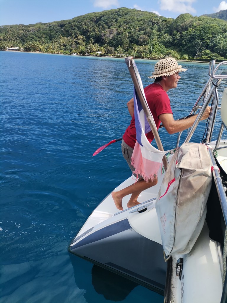 Comme l’an passé, Azyu rejoint la flottille de joyeux lurons qui, chaque Pentecôte depuis 1986, crient « haut les cœurs » en faisant le tour de Taha’a.