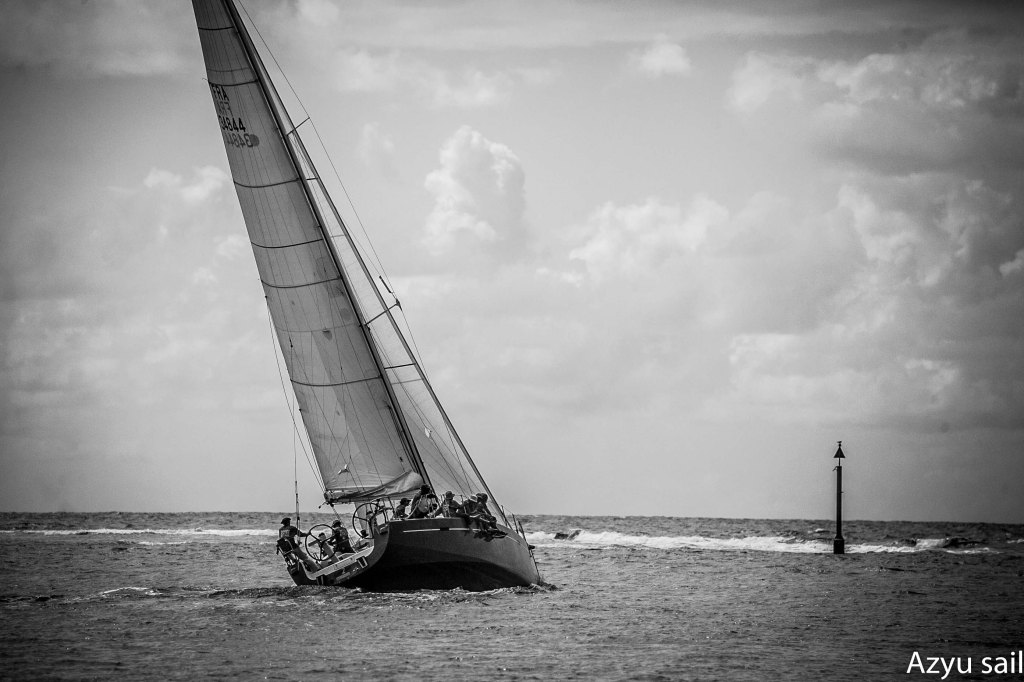 La fleur au fusil, monocoques et multicoques se tirent la bourre la première heure. Puis, dès la 2e heure, la brise retombe. Par leurs couleurs et l’espoir qu’on place en eux, les spi redonnent un peu de nerf à cette course devenue pépère.