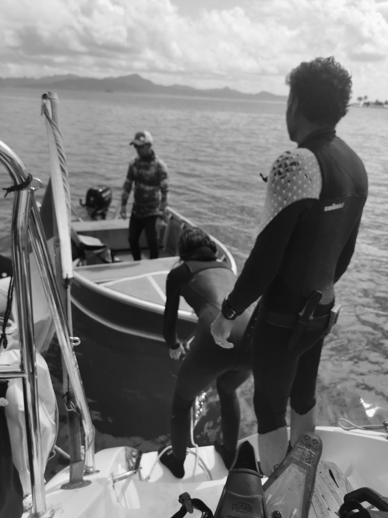 À quatre reprises, Adrian vient nous chercher sur Azyu pour nous amener sur plusieurs sites de plongée. L’objectif est, progressivement, de descendre jusqu’à 24 m.
