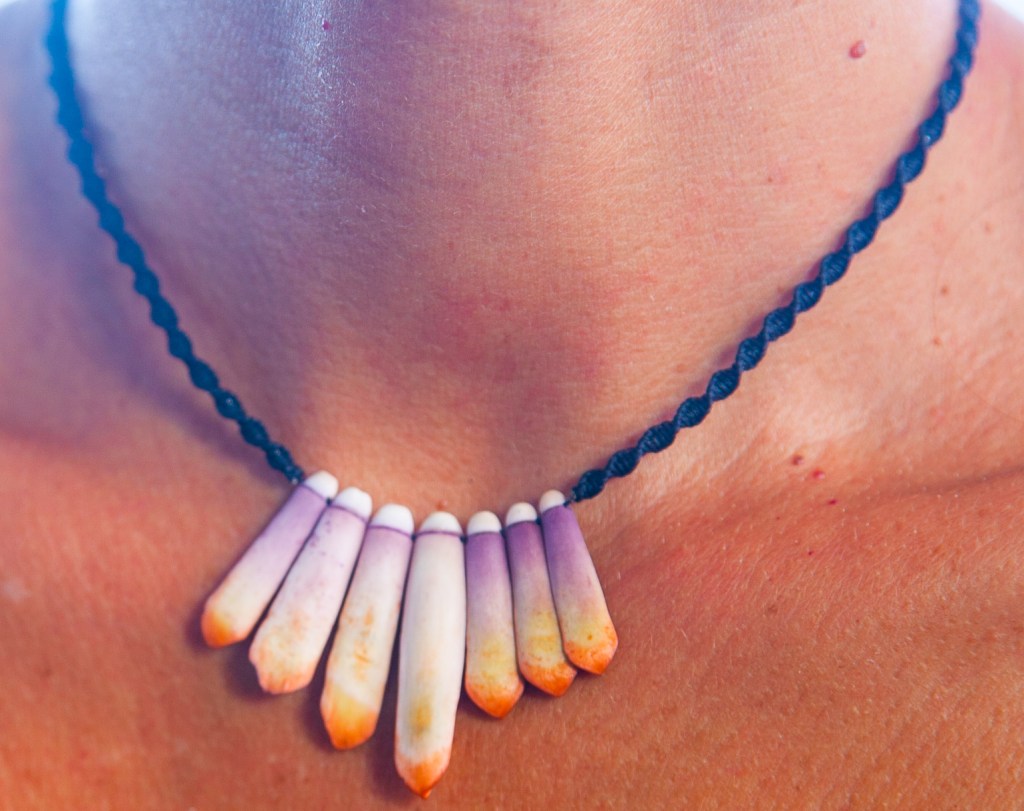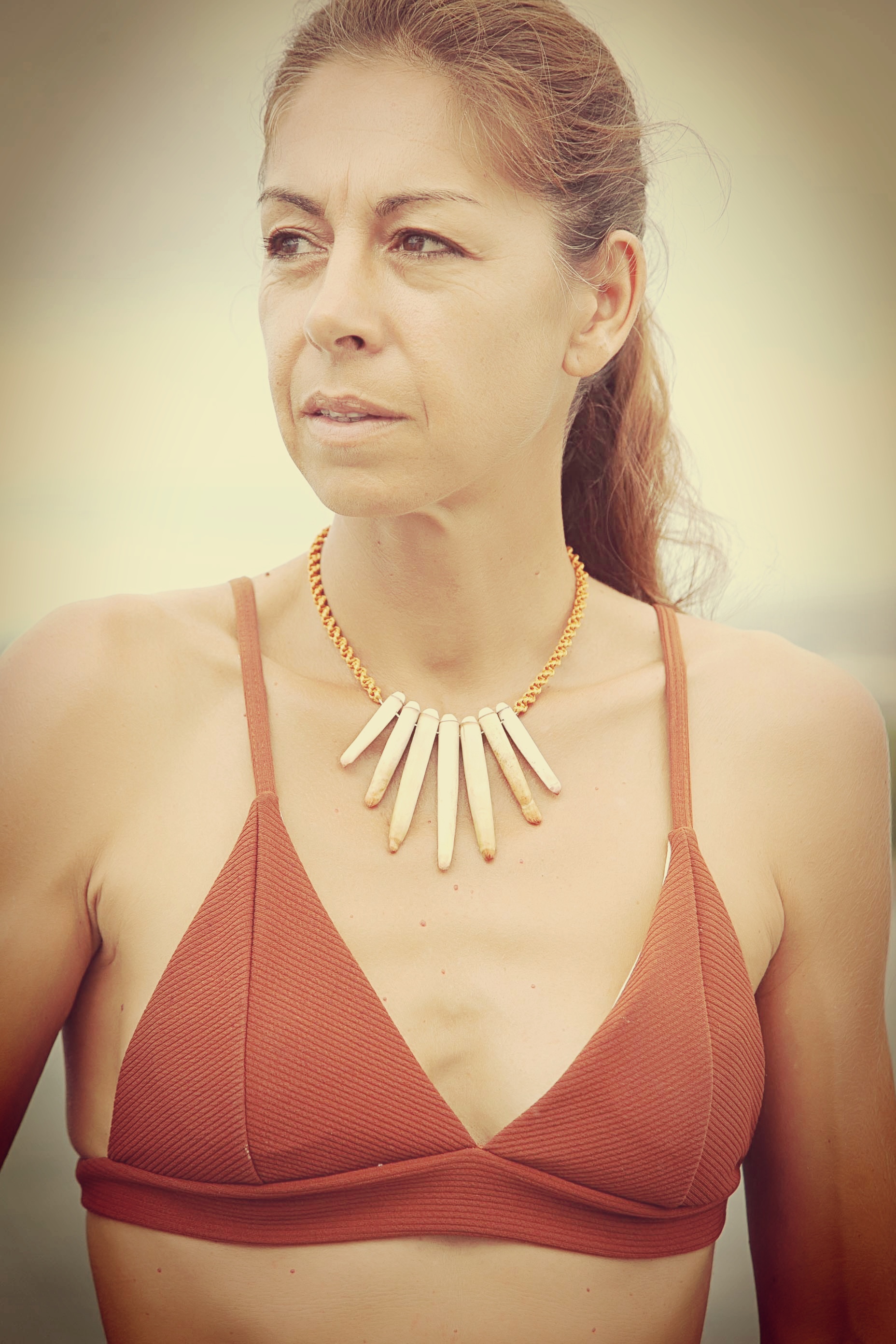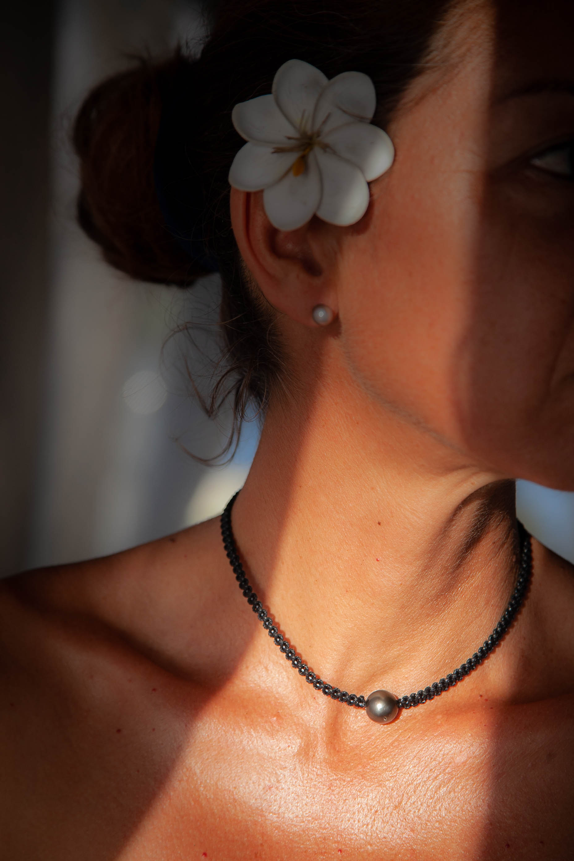 Chaque jour, je tutoie la nature polynésienne : l’eau cristalline du lagon, les fleurs exubérantes partout, les crêtes abruptes des volcans éteints, les couchers de soleil incroyables… J’ai eu envie d’un peau-à-peau avec ces éléments. D’où l’idée de bijoux portés en talisman, à l’instar des tatouages marquisiens.