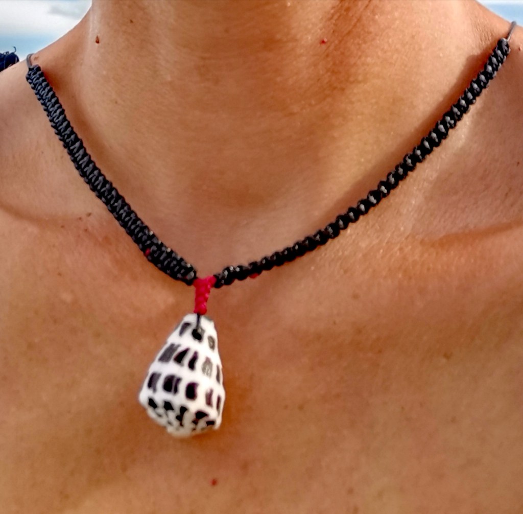 Les porcelaines, j’en ai collecté plusieurs variétés : les porcelaines monnaie ou cauris utilisées jadis comme monnaie d’échange, les porcelaines obvelata, blanches également, les porcelaines tête de serpent, sur fond marron.