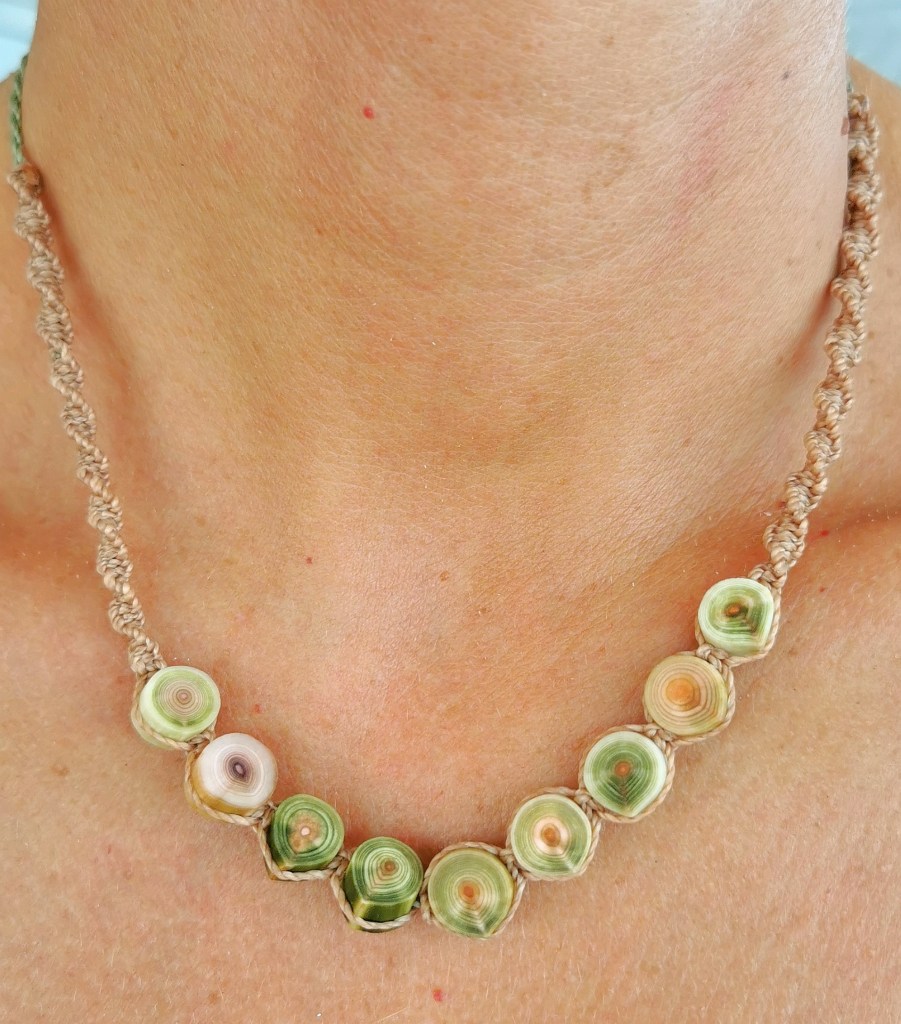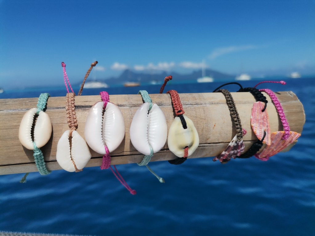 Celles que vendent les Polynésiennes sont toujours incroyablement brillantes. C’est parce qu’elles les ramassent vivantes sur le récif ; ensuite, elles les ensablent au moins un mois pour tuer le gastéropode. Moi, je n’ai pas le cœur de tuer les animaux. J’attends leur fin de vie.