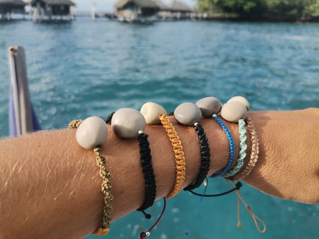 J’ai ramassé des caniques aux Marquises. Ce sont de grosses graines grises douces et très résistantes. Je les ai trouvées exactement à Anaho, au nord de l’île de Hiva Oa, dans des arbustes épineux.