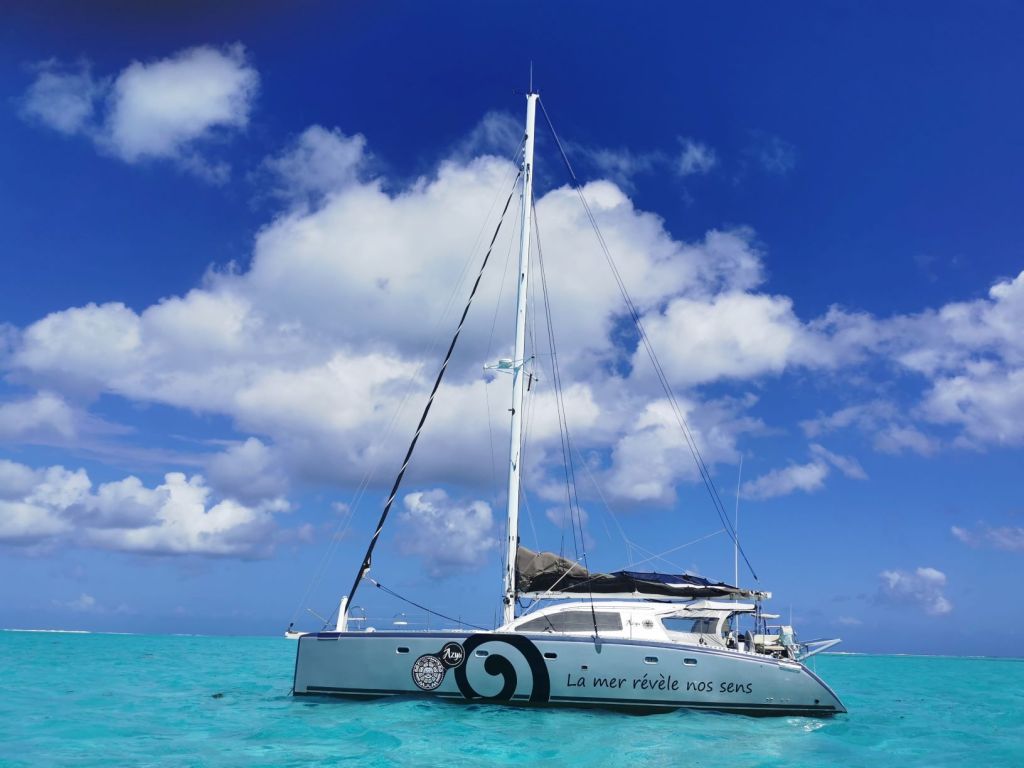 Le pavillon polynésien flotte désormais sur notre catamaran et plus seulement par simple courtoisie.
