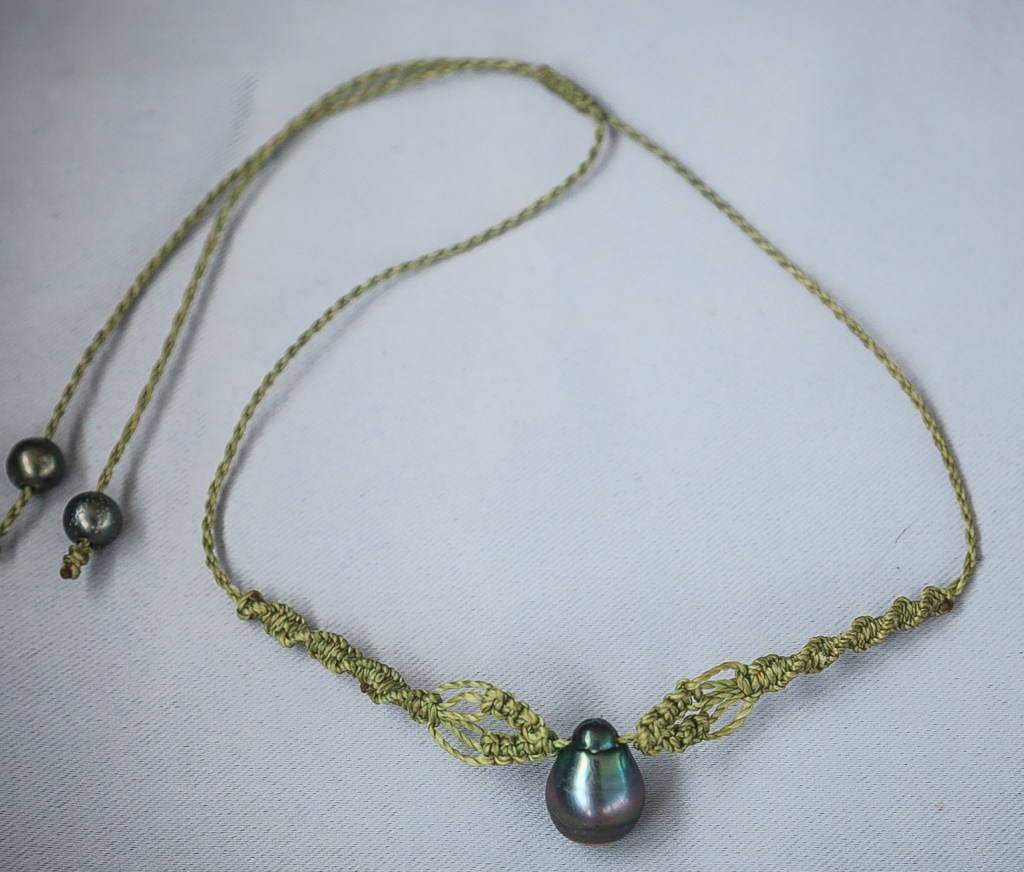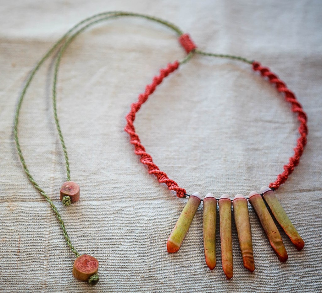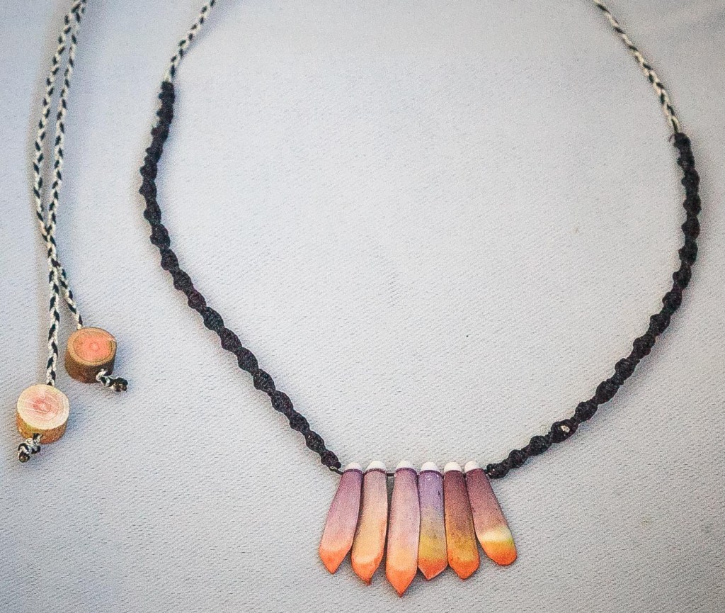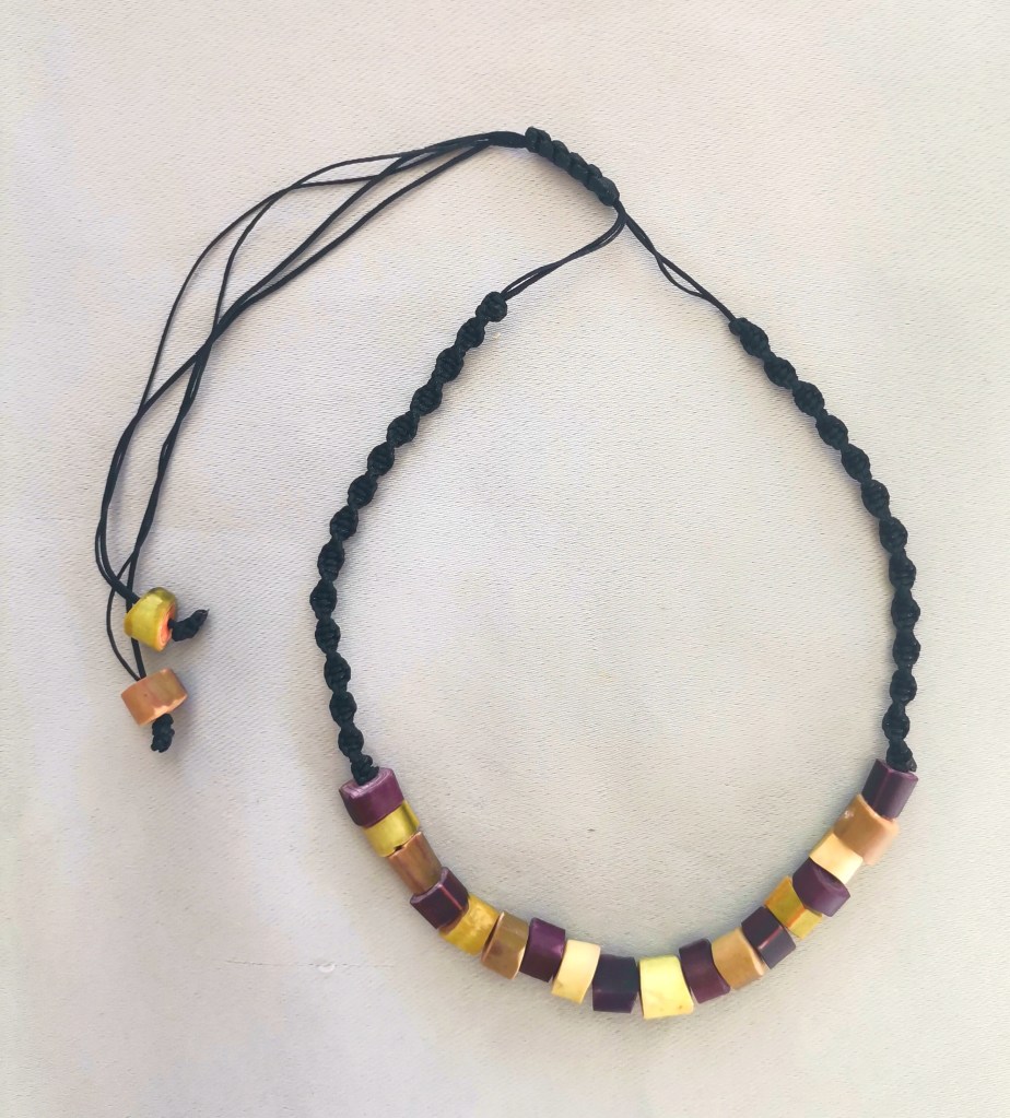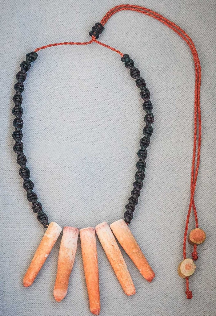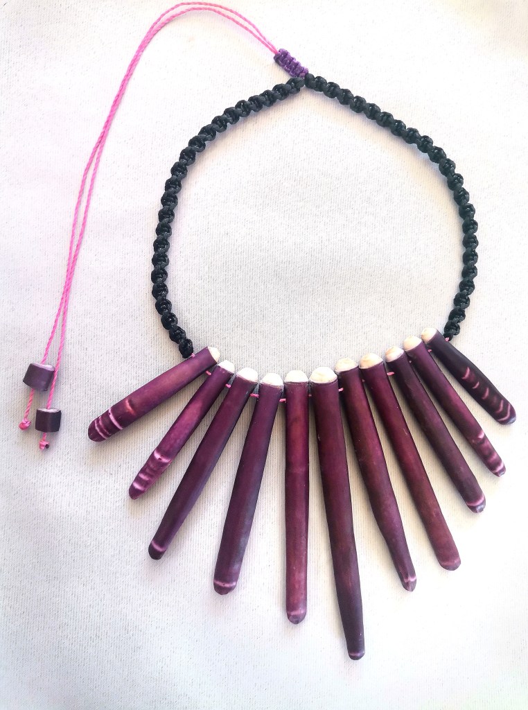 De couleurs variées, les colliers jouent sur les perles de culture, les cônes ainsi que les aiguilles d’oursin crayon. Tous les colliers sont ajustables à votre cou grâce à un nœud macramé coulissant.