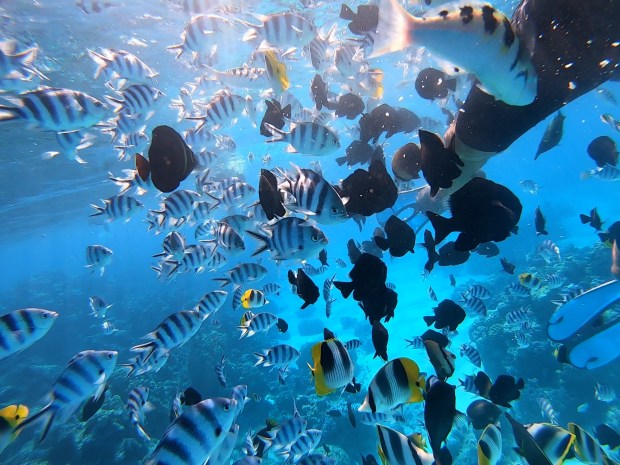 - Snorkeling le long du récif ou dans les passes (tortues, raies, requins pointes noires).