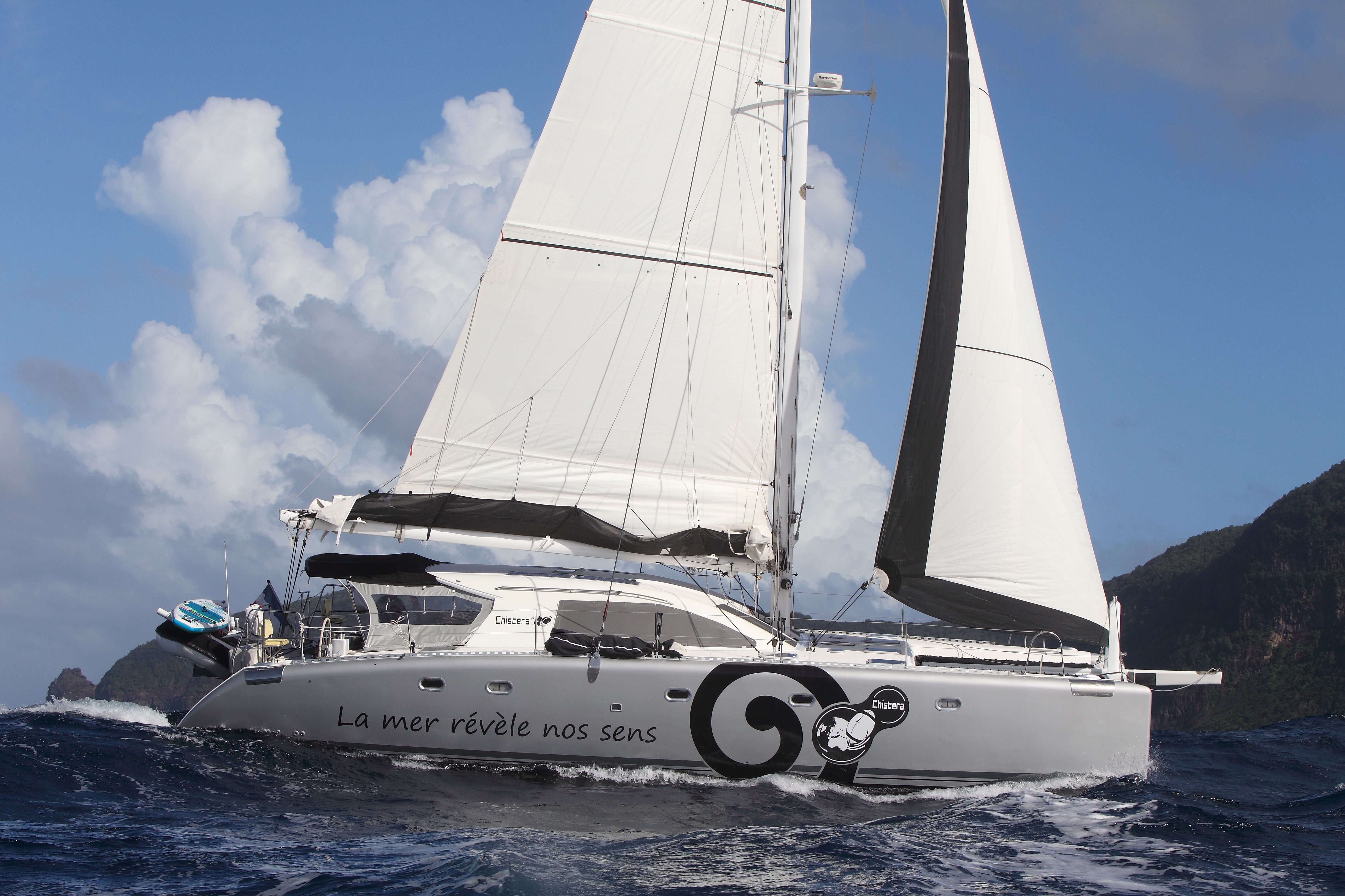 Nous voilà installés sur un Nautitech 475. L’excitation de naviguer à plat sur un voilier plus spacieux (9 couchages) et plus rapide (10 noeuds en moyenne) est à son comble. Ce changement de vie, nous le devons à la rencontre d’une sympathique famille malouine.