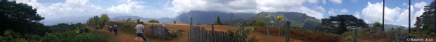 Ayant chacun retrouvé notre compagnon hippique, nous nous engageons dans une allée majestueuse d’acacias. Puis nous arpentons un chemin qui mène à un belvédère d’où la vue est prodigieuse sur la canopée : manguiers au port immense, avocatiers généreux, pandanus, filao (famille des épineux), jamblons, cocotiers, châtaigniers du Pacifique (« mape »), banyans… peignent un paysage inattendu et joyeux. C’est évident, la nature ne commet jamais de faute de goût ! Entre de longues avancées au trot – de plus en plus douloureuses pour nos cuisses et nos fesses –, nous faisons régulièrement galoper nos montures, encouragées par Jérémie. Déjà 5 heures que nous battons la campagne quand nous touchons, à nouveau, le bitume. « Yop ! ». Non ! Si ! Nous galopons, comme des cow-boys pleins de morgue, dans les rues d’Atuona et même devant la gendarmerie !