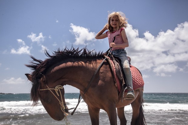 Épatés par notre sortie et par le professionnalisme de Jérémie qui ne cesse de héler ses animaux tout en réagissant au moindre danger, nous lui présentons nos deux filles une semaine plus tard. À pied, il les mène en fond de vallée, sous le couvert des cocotiers et des pistachiers. L’équipée longe paisiblement l’ancien cimetière avant de respirer l’air marin de la plage où les bons chevaux, délestés de leur selle, ont droit à une baignade revigorante.